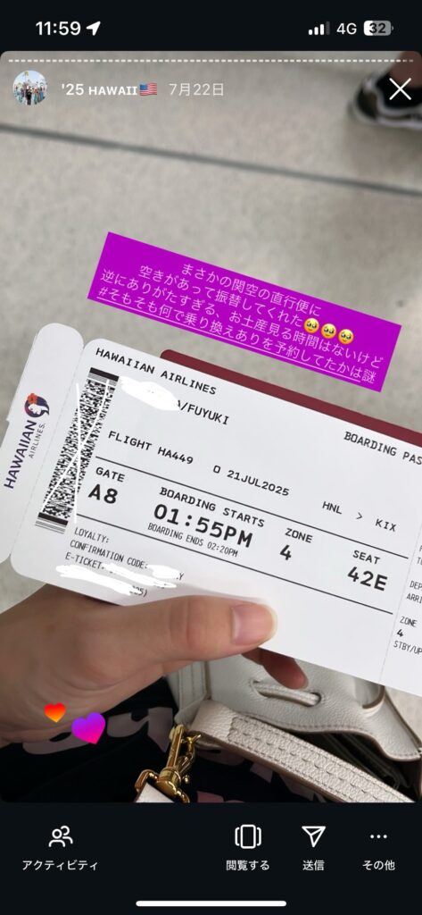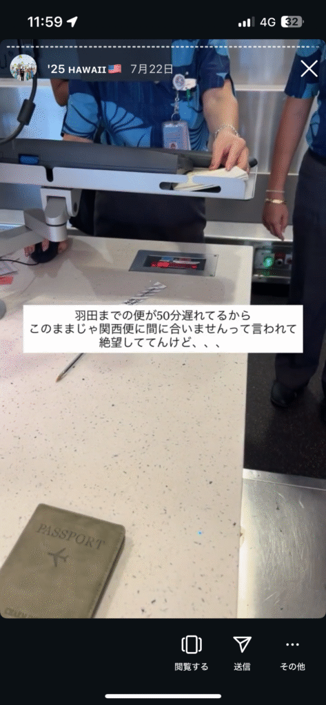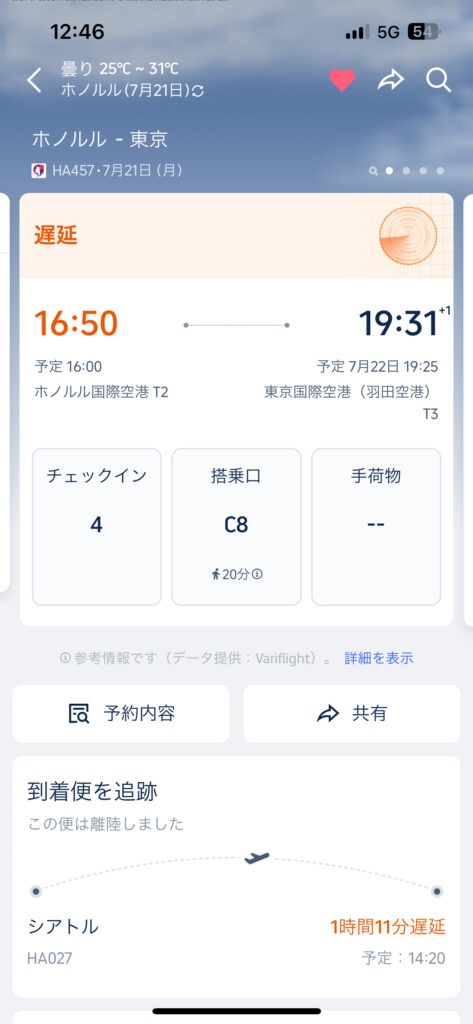 ホノルルから羽田の便がまさかの1時間以上遅延で