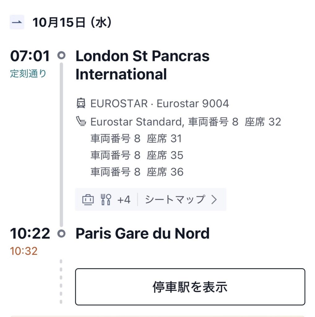 ロンドンとパリには時差が1時間あるので移動自体は2時間半です。